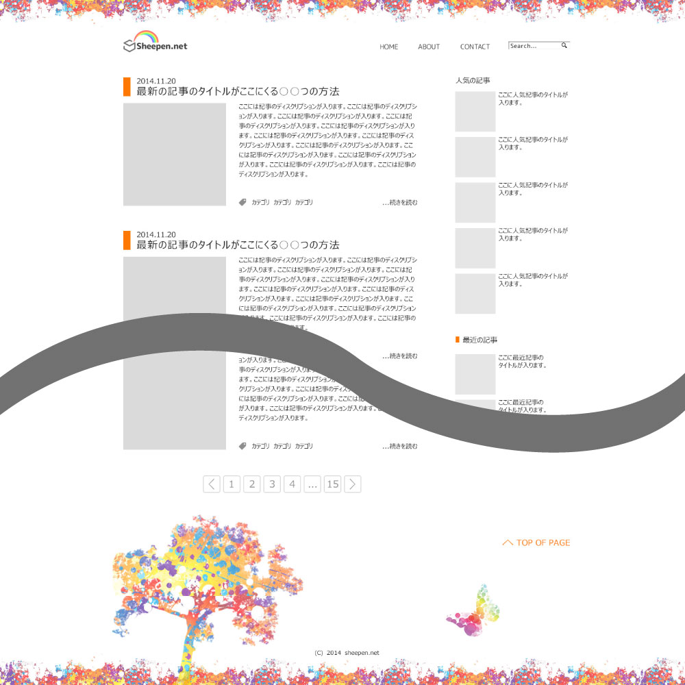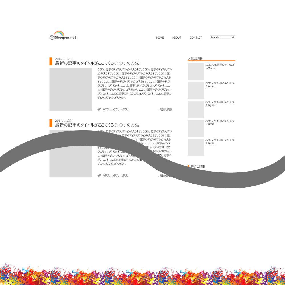 ヘッダーとフッターのレインボー部分は前者の鮮やかな物もキレイで良いんですけど、ちょっと目が痛いかなってことで彩度を抑えました。まだ主張が強い感じがしているので、ドットをかけて薄くしようかと現在考え中です。